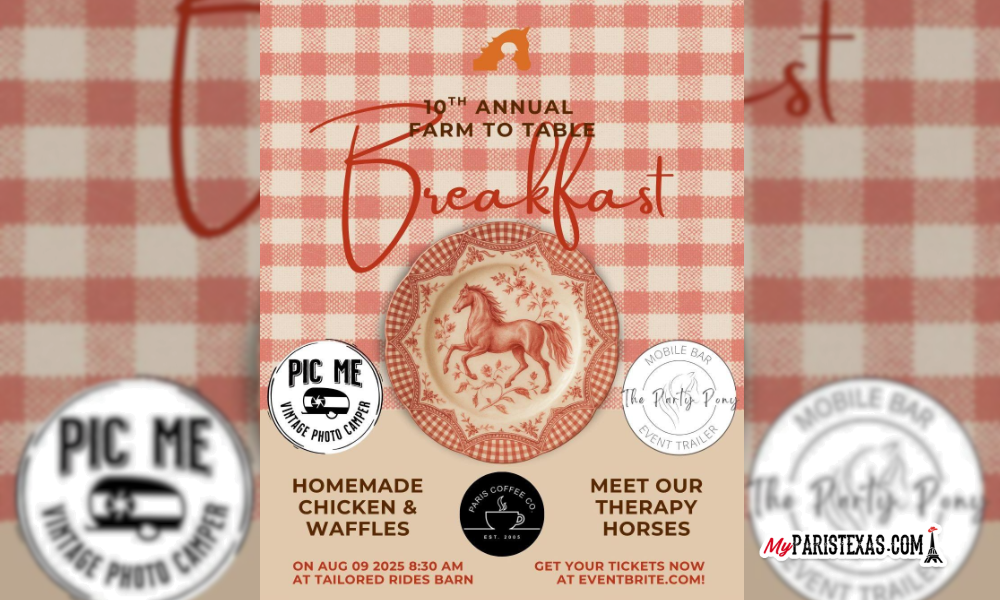 The 10th Annual Farm To Table Breakfast, benefitting Tailored Rides Equine Assisted Therapy, will be held on Aug. 10, 2025, at 8:30 a.m.