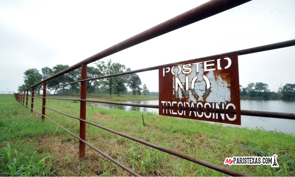 Photo Credit: A welded metal fence with posted signs blocks access to the Cutoff. Joel Andrews for the Texas Tribune