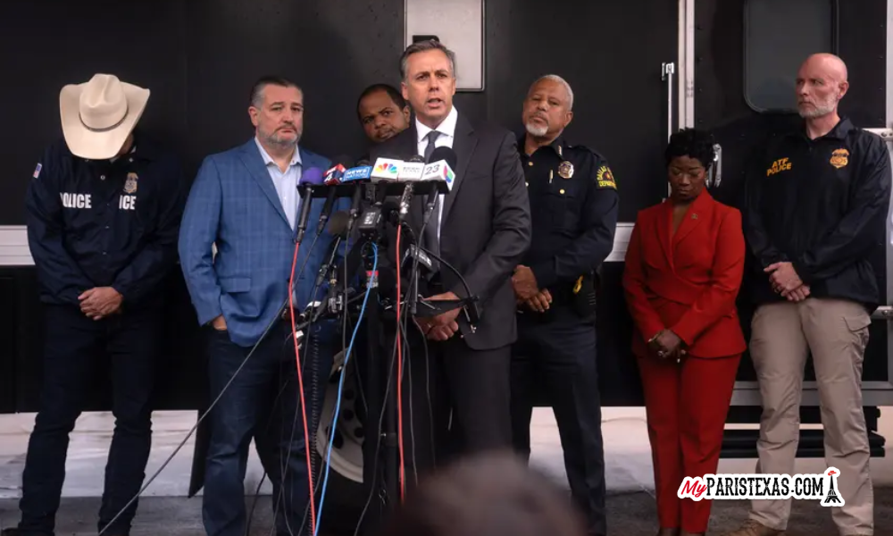 Photo Credit: Joe Rothrock, special agent in charge of the Dallas FBI field office, speaks at a press conference after a fatal shooting at an ICE field office in Dallas on Sept. 24, 2025. U.S. Sen. Ted Cruz stands to the left of Rothrock. Credit: Johnathan Johnson for The Texas Tribune.