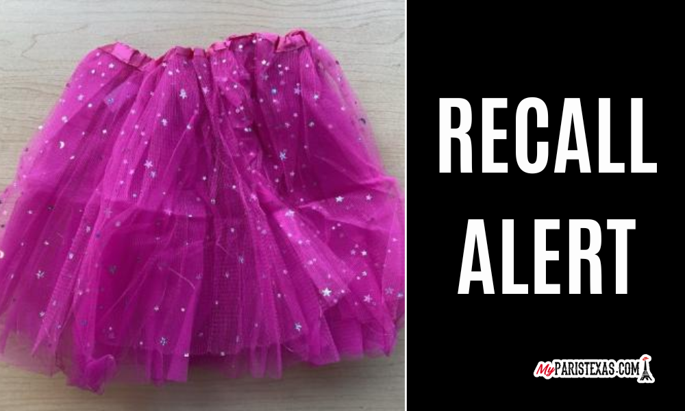 Description: This recall involves Bmrwtg LED Tutu Skirts. The recalled skirts were sold in pink, purple, yellow, red, blue, green, white and black, and have silver circles and stars that light up. The lights’ battery compartment has two CR2032 lithium coin batteries. The skirts were marketed for children ages 2 through 8.