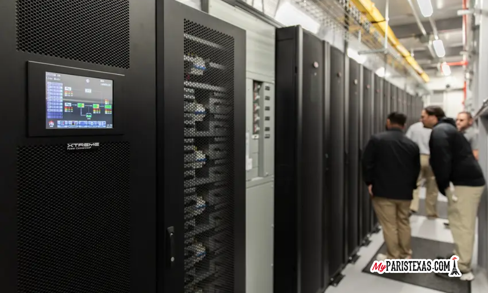 Photo Credit: Amarillo business owners and community leaders tour the Edge Data Center at the Region 16 Education Service Center on March 19. The data center is much smaller than some of the new ones planned for other parts of rural Texas. Credit: Angelina Marie for The Texas Tribune