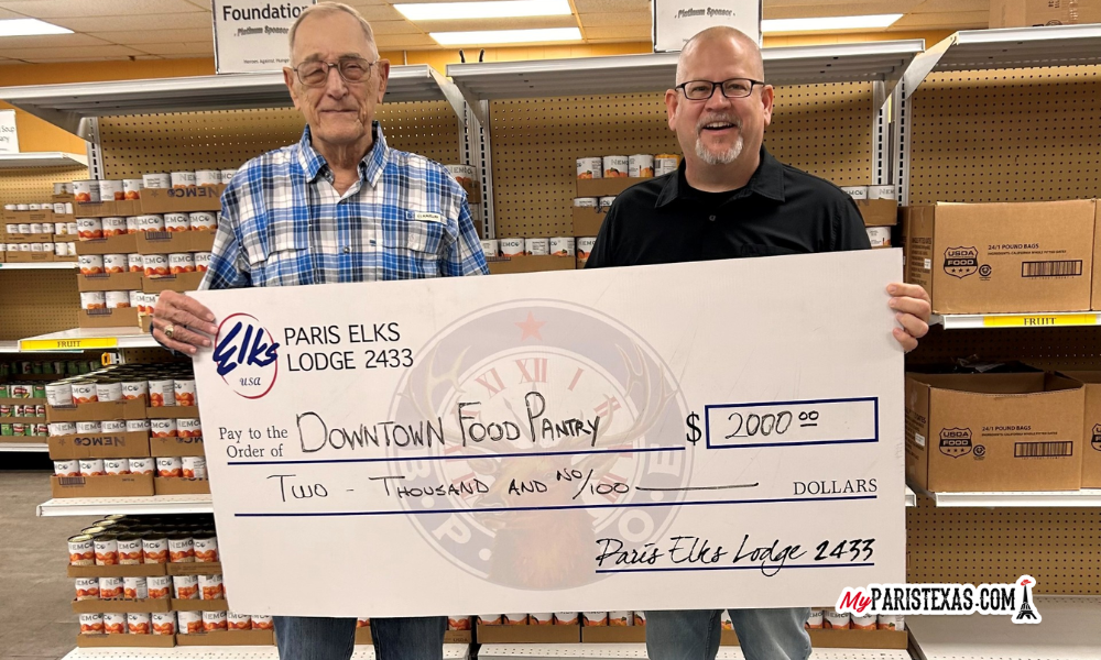 Members of the Paris Elks Lodge #2433 showed again their faithful service to the community by making a $2,000 donation to Downtown Food Pantry.