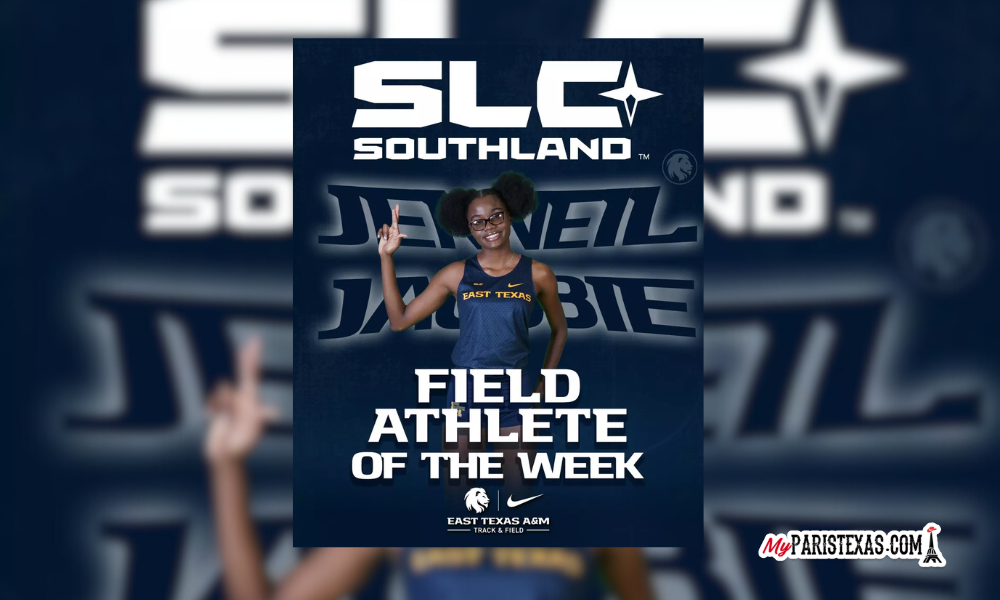 East Texas A&M University track and field student-athlete Jenneil Jacobie has been named the Southland Conference Women’s Field Athlete of the Week last Wednesday afternoon.