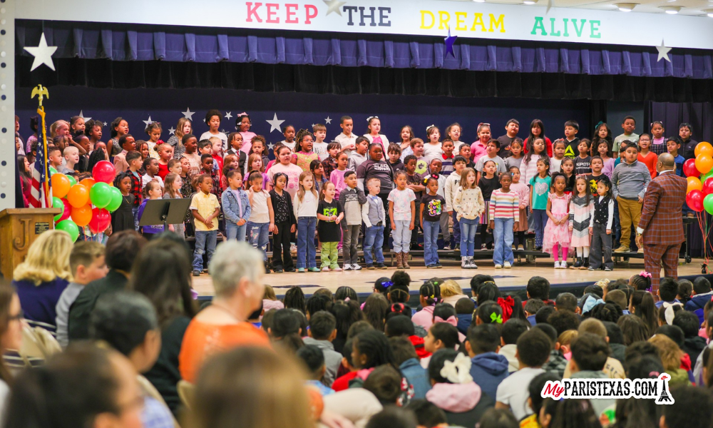 Students at Justiss Elementary School recently took the stage for their much-anticipated annual first grade performance, delivering a program that was both entertaining and deeply meaningful. This year’s theme paid tribute to the life and legacy of Dr. Martin Luther King Jr., celebrating his message of equality, peace, and unity.