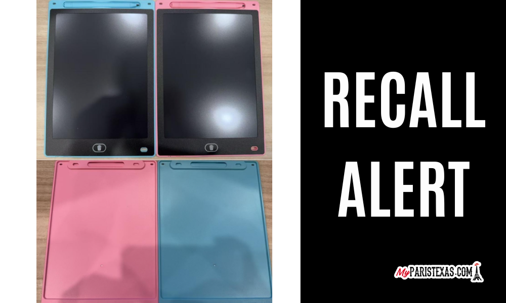 Remedy: Consumers should immediately stop using the recalled writing tablet toys and contact KTEBO for a free replacement set of tablet toys. Consumers should write “RECALLED” on the back of both tablet toys that came in the set, take a photo of the marked tablet toys, and submit the photos to writing-tablet-recall@ktebo.com with “Recall Proof” and their name in the subject line.