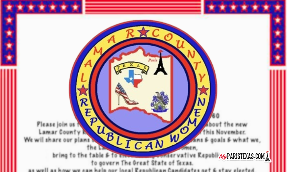 “Please just us for an informational only meeting to learn about the new Lamar County Republican Women’s club. We will share our plans on how we get there, the future plans and goals, and what we bring to the table to elect strong conservative republicans to govern the great state of Texas. We will also discuss how we can help our local republican candidates get and state elected.”
