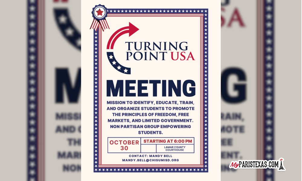 The local chapter of Turning Point USA will host a meeting at the Lamar County Courthouse on Oct. 30, open to all high school students.