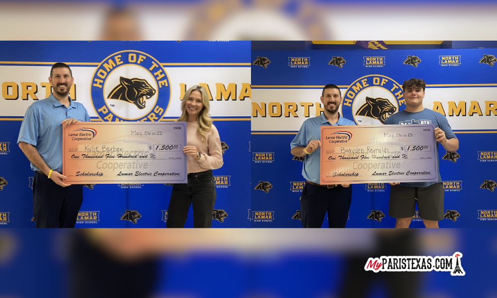 North Lamar ISD students Kylie Barber and Brayden Reynolds recently received a $1,500 Lamar Electric Cooperative scholarship.