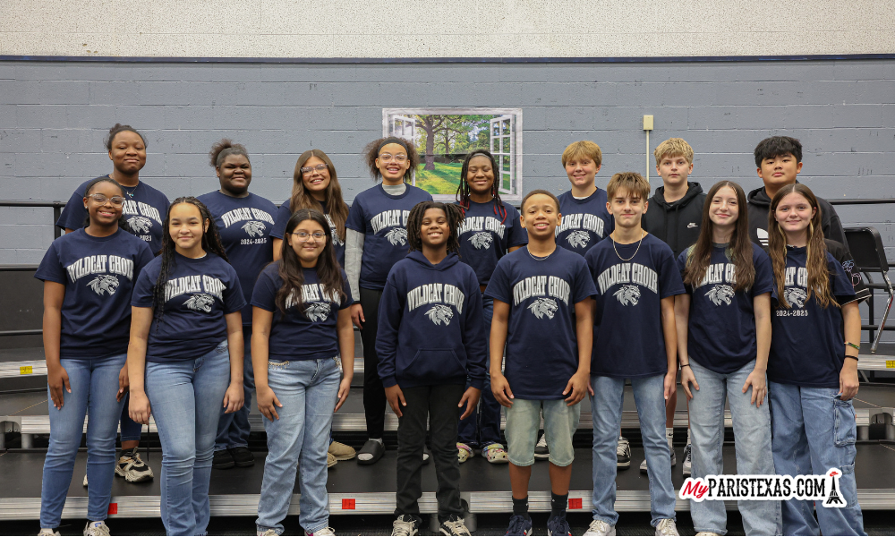 Twenty-five Paris Junior High Wildcat Choir members recently competed at the Junior High All-Region Choir auditions in Sulphur Springs. Fourteen students earned spots in the prestigious All-Region Choir, with two named as alternates — an outstanding achievement reflecting weeks of dedication and practice.