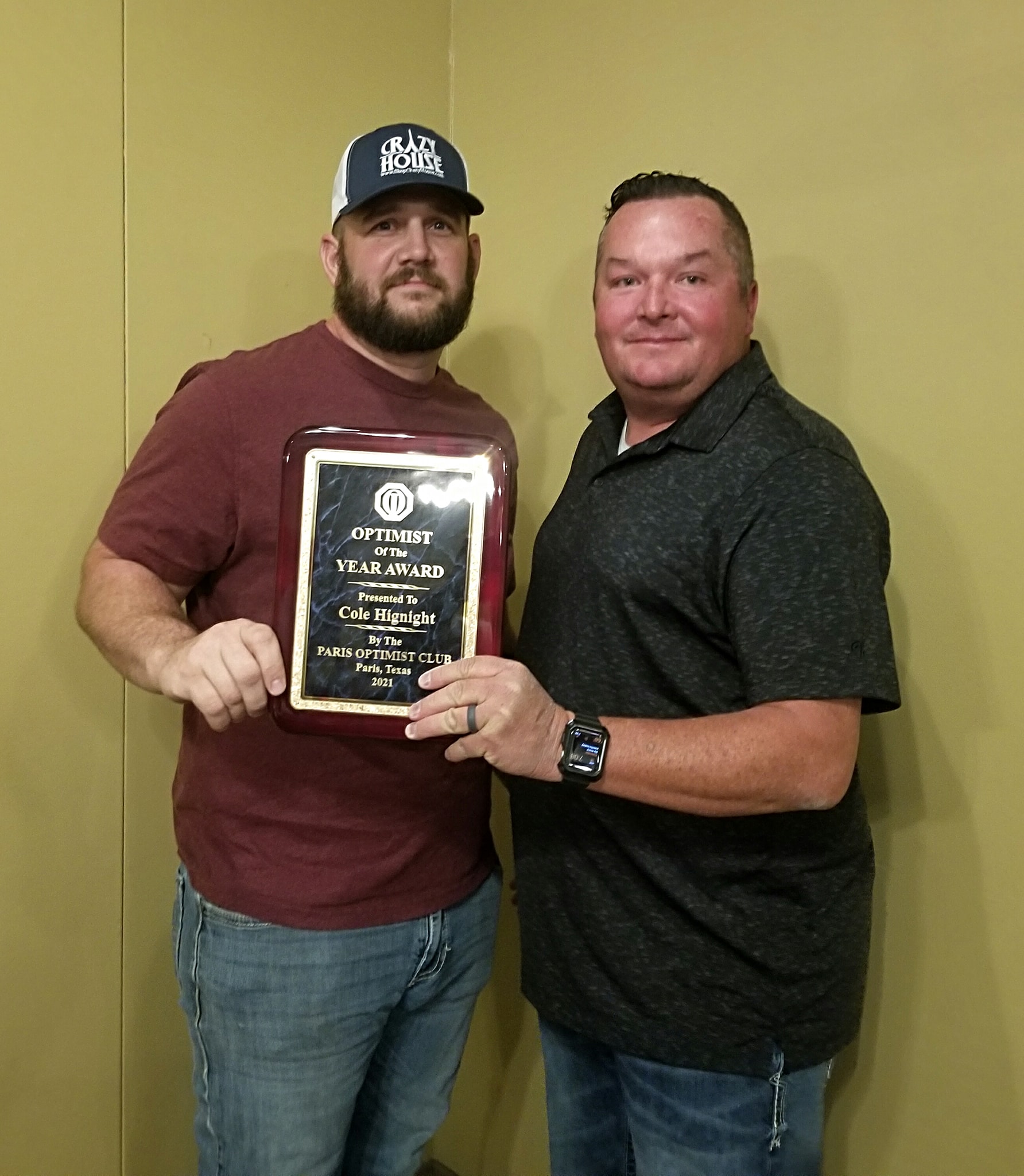 New Club President Chad Farris thanked Angela Rember for “being a great president the past two years.” He also presented the Optimist of the Year award to Cole Hignight for “his outstanding service to the Club in 2021.”