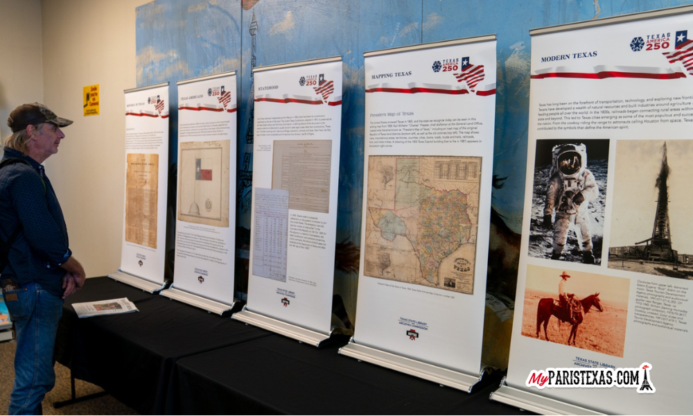 The Paris Public Library invites everyone to celebrate and learn about our nation’s history through a new temporary exhibit, Texas America250. The exhibit, provided by the Texas State Library and Archives Commission, is on display until Feb. 28, 2026. Later, it will travel to the Maxey House, North Lamar ISD, and possibly other locations in Lamar County throughout 2026.