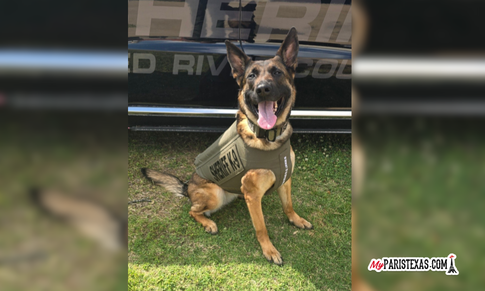Red River County Sheriff’s Office, TX, K9 Stingray has received a bullet and stab protective vest thanks to a charitable donation from non-profit organization Vested Interest in K9s, Inc. K9 Stingray’s vest was sponsored by Brittany Sims of Greenville, TX and embroidered with the sentiment “In memory of K9 Officer Phil Prather”.