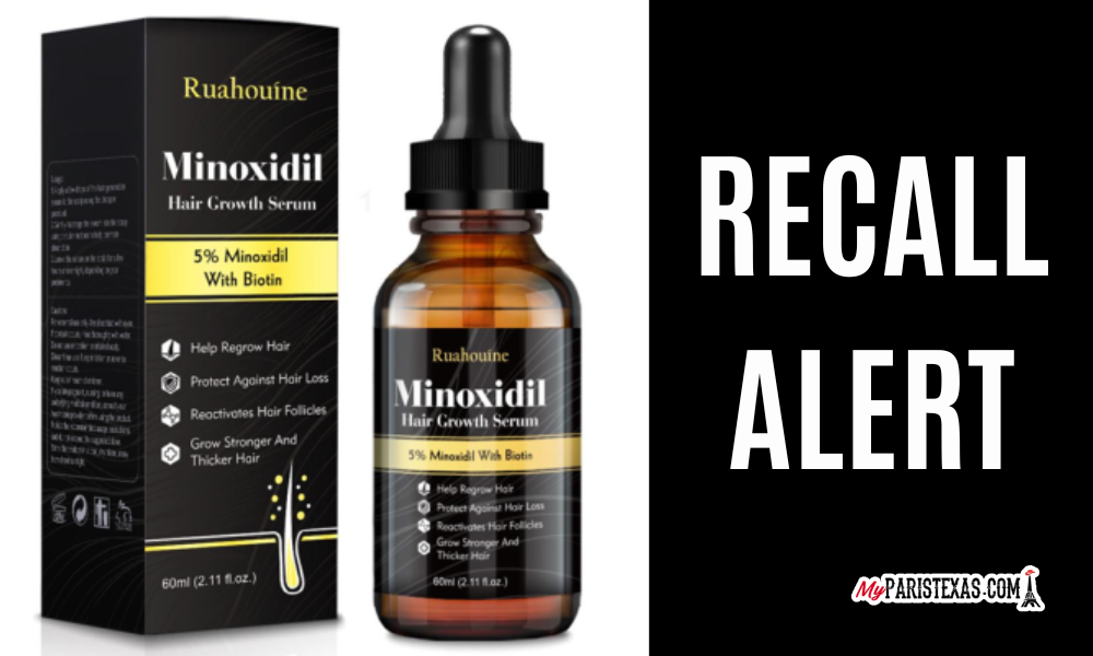 Description: This recall involves Ruahouine Hair Growth Serum. The serum comes in 60ml (2.11 fl. oz.) transparent amber dropper bottles. “Ruahouine”, “Minoxidil Hair Growth Serum”, and “5% Minoxidil With Biotin” are printed on labels wrapped around the bottles.