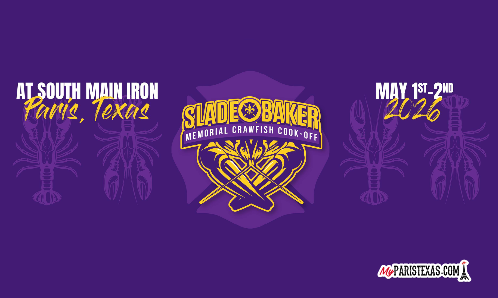 The Slade Baker Memorial Crawfish Cook-Off, a two-day event in downtown Paris featuring live music, cold drinks, and all-you-can-eat crawfish, will be held this weekend, May 1 & 2.