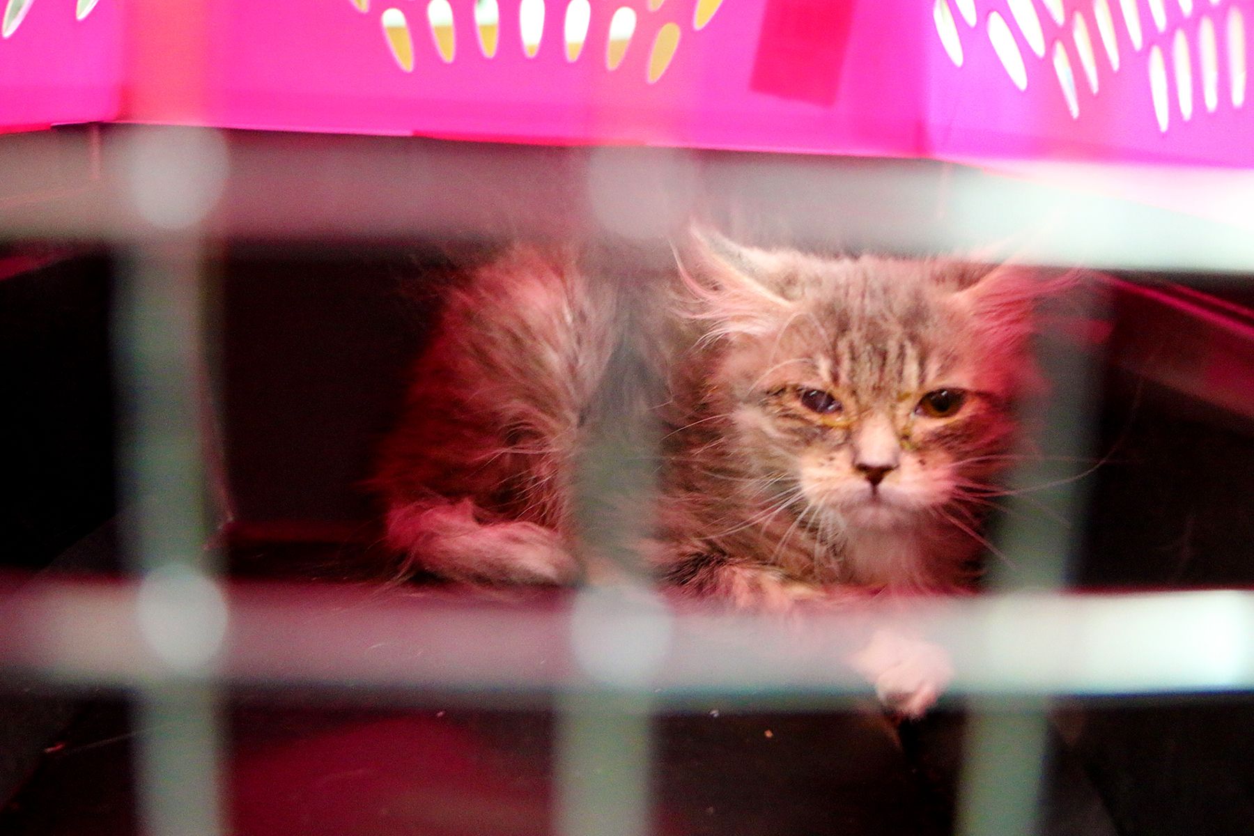 The cats were found living inside the house on the property among piles of debris, feces and urine. A few cats were confined to pens, and others roamed the house freely.