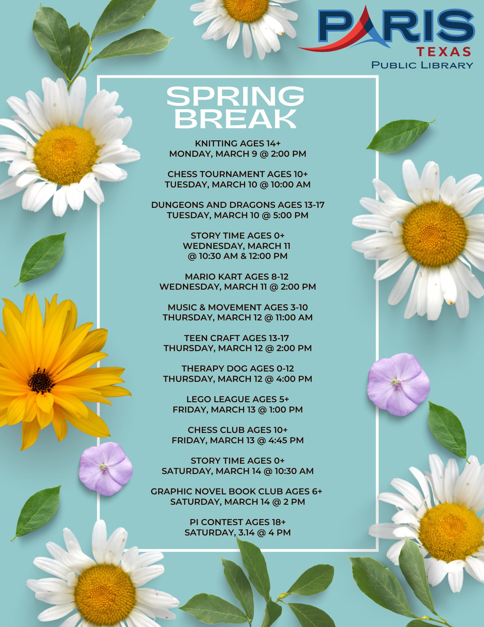 Home LOCAL EVENTS Spring Break at the Paris Public Library