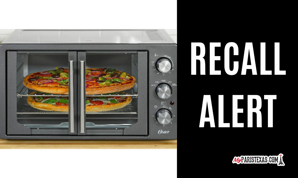 Description: This recall involves Oster French Door Countertop Ovens with model numbers TSSTTVFDXL, TSSTTVFDDG, TSSTTVFDMAF and TSSTTVFDDAF. The recalled ovens have a spring-loaded bilateral door made of glass with metal handles. A label on the backside of the oven identifies the model number. In addition, the original packaging has information identifying the model number. The four models differ in cooking options (e.g., air fryer) and control types (analog dials or digital push-button controls). “Oster” is engraved on the front bottom right of the oven.