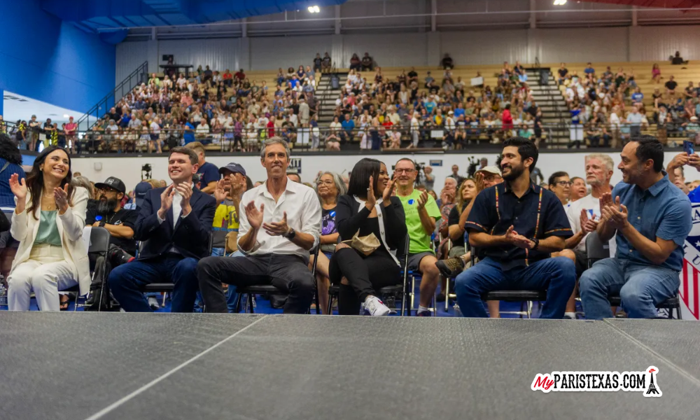 Photo Credit: From left to right: state Rep. Gina Hinojosa, D-Austin; state Rep. James Talarico, D-Austin; former U.S. Rep. Beto O’Rouke, D-El Paso; U.S. Rep. Jasmine Crockett, D-Dallas; U.S. Rep. Greg Casar, D-Austin; and U.S. Rep. Joaquin Castro, D-San Antonio, are met with applause during a redistricting rally at Delco Activity Center on July 25, 2025, in Austin. Ronaldo Bolaños/The Texas Tribune