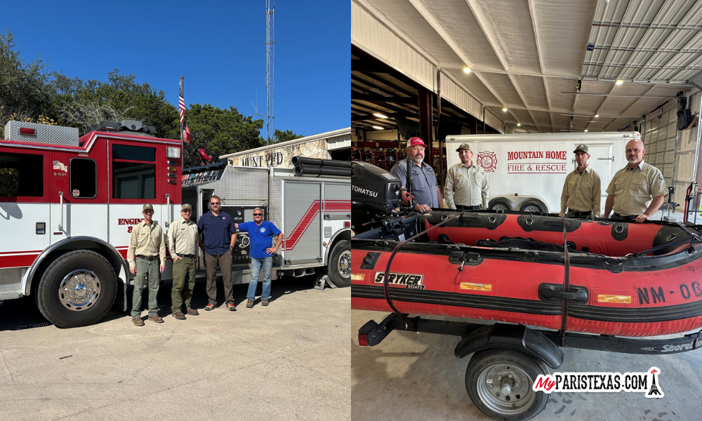 A fire engine, 17 air packs and two rapid intervention team packs were donated to Mountain Home Volunteer Fire Department by Fulshear Volunteer Fire Department. A water rescue boat was donated to the department by a private donor in New Mexico. The donated fire engine replaces a fire engine that was lost during the flood. The rescue boat is an addition to the department and will increase the capacity of its swift water rescue team.