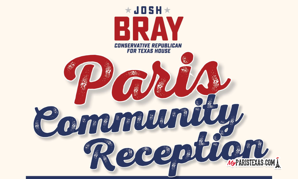 Conservative Republican candidate for Texas House, Josh Bray, will host a community reception in Paris on Friday, Jan. 30, offering residents an opportunity to visit with the candidate and hear brief remarks about his campaign.