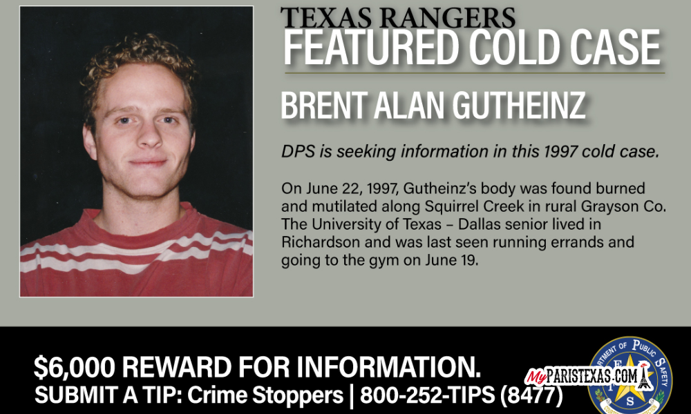 The Texas Department of Public Safety (DPS) is seeking information in the 1997 murder of 22-year-old Brent Alan Gutheinz in rural Grayson Co.