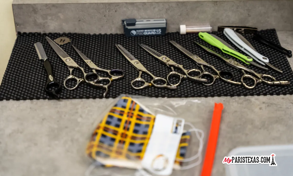 Photo Credit: Scissors and other barbershop tools at shown at Marchica’s Barbershop in Austin on May 28, 2020. Jordan Vonderhaar for The Texas Tribune