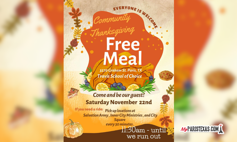 Travis School of Choice will host a Thanksgiving event on Nov. 22, 2025, offering free meals to the community.