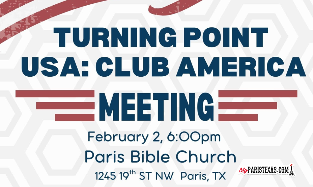 Paris’ Turning Point USA: Club America next meeting will be held on Feb. 2 at 6 p.m. with guest speaker Dylan McGuire.