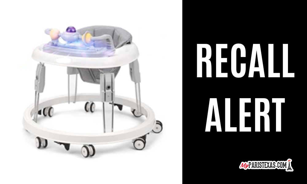 Hazard: The recalled infant walkers violate the mandatory standard for infant walkers because they can fit through a standard doorway and fail to stop at the edge of a step, posing a deadly fall hazard. In addition, the infant walkers have leg openings that allow the child to slip down until the child’s head can become entrapped, posing a risk of serious injury or death.